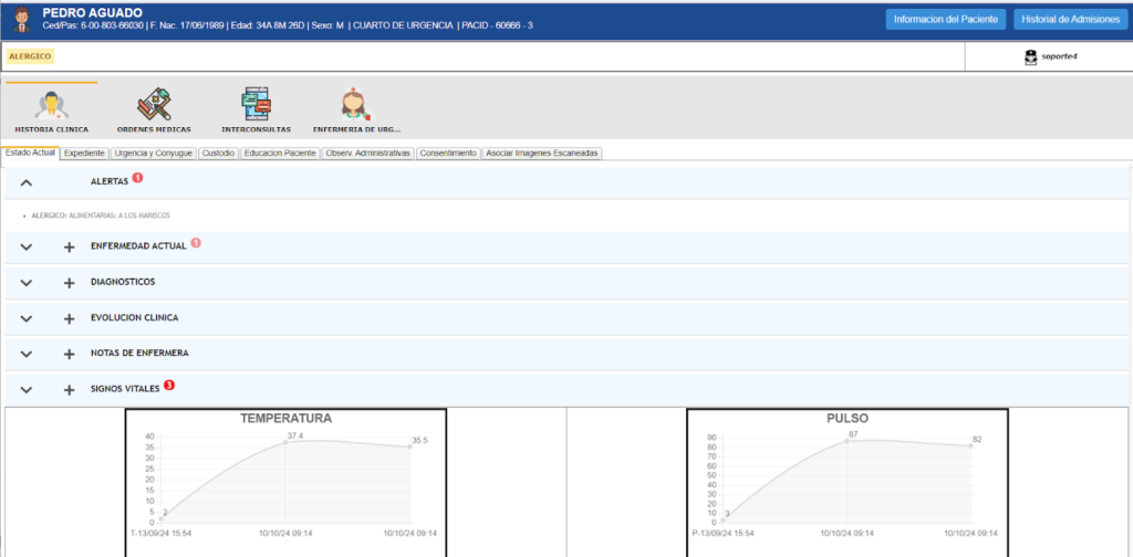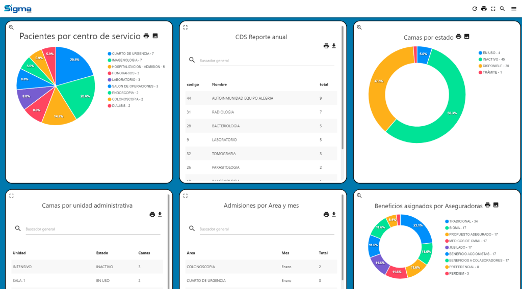 Las Integraciones y Utilidades que posee el sistema, facilitan la interoperabilidad y optimización de procesos hospitalarios mediante la integración con sistemas como LIS/RIS para la gestión de órdenes médicas de laboratorio e imagenología, con resultados disponibles en el expediente clínico. Incluye identificación rápida de pacientes mediante huella digital, registro automatizado de signos vitales y procedimientos anestésicos, todo vinculado al historial médico. Además, proporciona soporte técnico 24/7, asegurando asistencia continua, capacitación y asesoría funcional para mantener la operatividad del sistema. Por otra parte, ofrecemos la cualidad de mostrar gráficos interactivos con la información que alimenta el sistema.